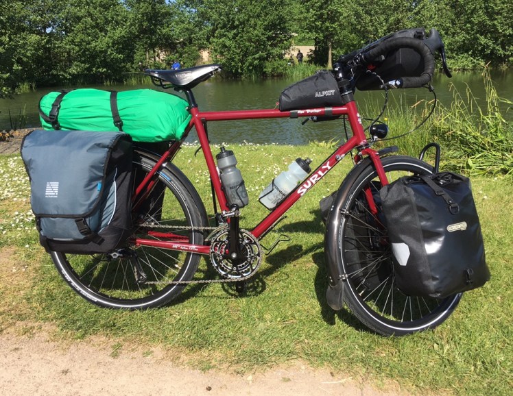 After more repacking or to be accurate unpacking and ditching things, the Surly is ready to go. Short final test this afternoon and all seems good. Now just need to haul the bike, 22kgs of gear and me, along (up and down) the Basque Country and through France. That’s assuming I can lift it on and off the train to Portsmouth !