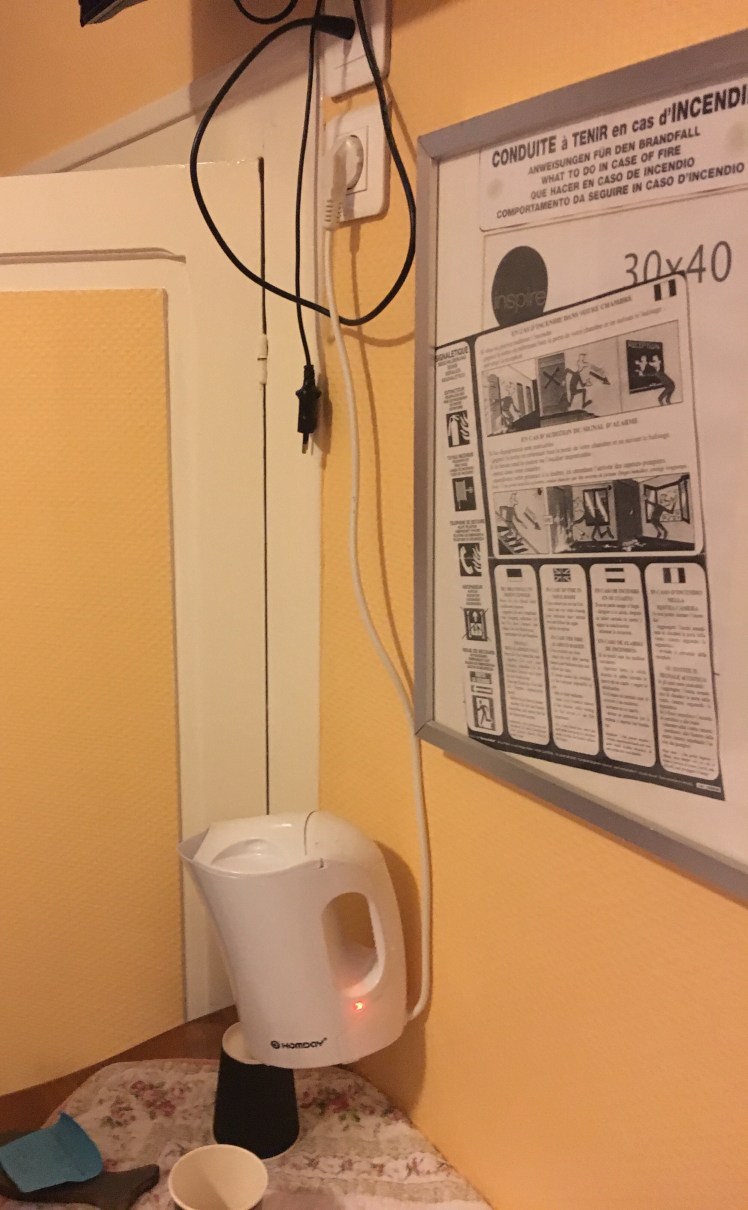 It was a luxury to sleep in a hotel last night, but after 77 miles we felt we had earned it. The hotel was OK, but some of the facilities were a bit lacking. Fortunately Tim with his decades of experience in the building industry and attention to Health and Safety came up with a solution !