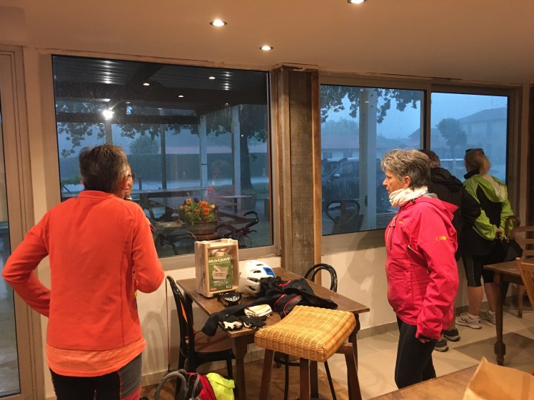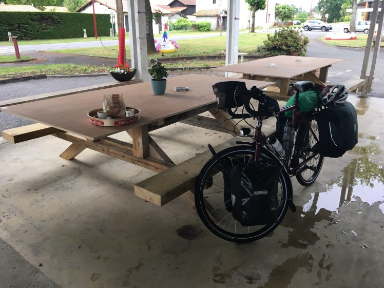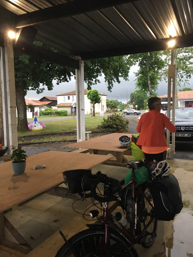 Eventually we made our way to Biganos and our camp for the night. Only to be warned of more storms and hail and told where the safe refuges are ! Looking forward to tonight !