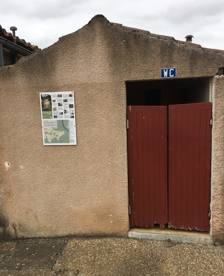 We stopped in the shade of an old church in Gouge, also from the 9th century with later additions. Apple pies for snacks. Across from the church were the public toilets, a bit run down and shared with a swallows nest. This time my privacy was disturbed by flying birds.