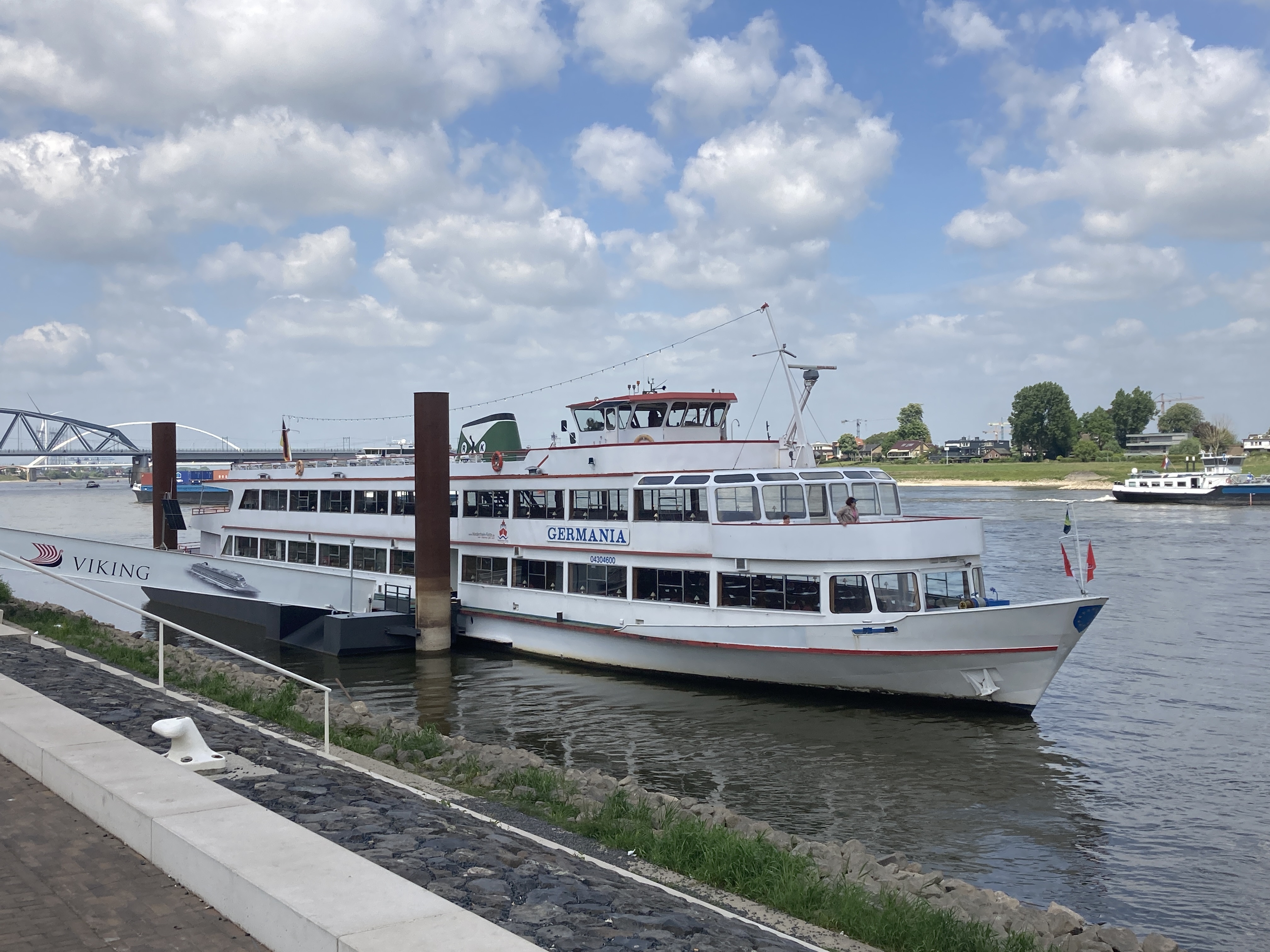 A few more km of beautiful scenery and I arrived in Nijmegen. What should I see moored at the quayside, that ship. The sneaky Germania must have taken a shortcut ! Or maybe it was a sister ship ?