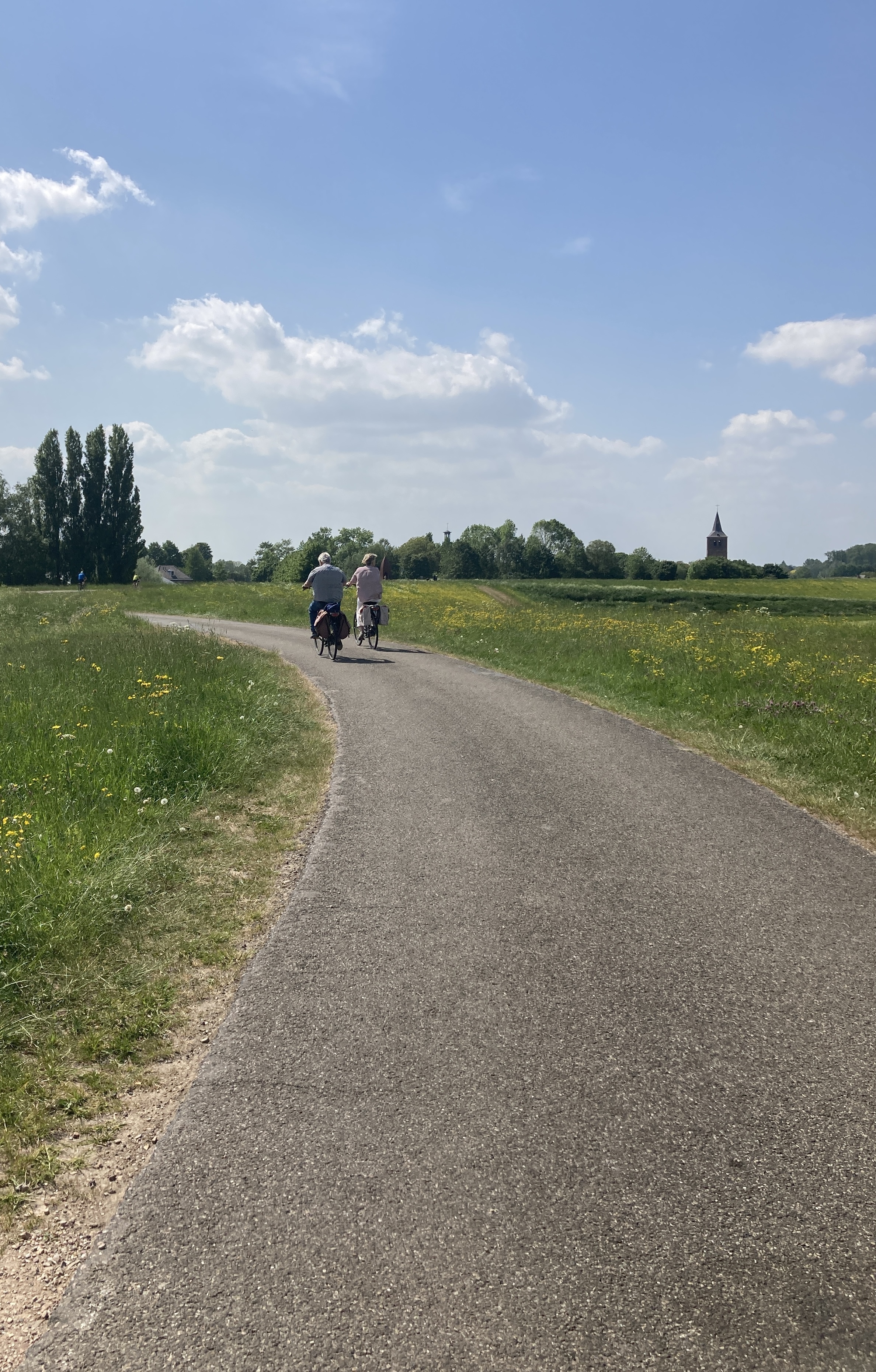 The afternoon continued, mainly on top of the dykes, running alongside or close to the river. Having spent most of the last two weeks cycling pretty much on my own, now there was a steady stream of cyclists, from families with children, racers young and old and OAPs (like me, well almost !) One thing that has struck me here is how popular electric bikes are, I’d say the majority of bikes I’ve seen are electric. I was chatting to one guy on a racing bike and even he had an electric bike for everyday use, it may be flat, but the wind is a killer. Further north I saw lots of people shopping on bikes with aero bars, even old grannies, it was quite funny.