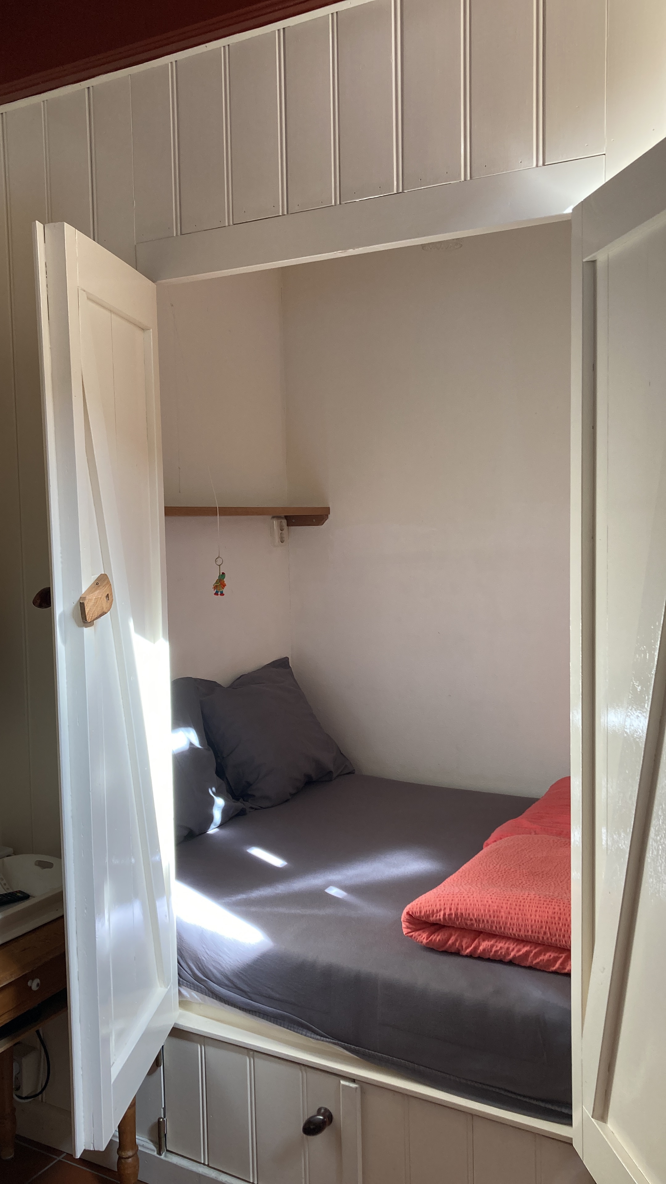 My B&B was in a lovely old house right by the river (behind the boat in the photo) , I had a lovely set of rooms, the fridge was full of food for breakfast, I just had to decide what to have. Think I’ll make up some sandwiches as well for the trip, plus a real surprise, fresh milk in the fridge. I’ve been mainly drinking coffee here, but will be tea tomorrow ! But the biggest surprise was unveiled to me by the owner – I get to sleep in a cupboard ! Or being more kind a traditional box bed ! What a great way to spend my last night in the Netherlands