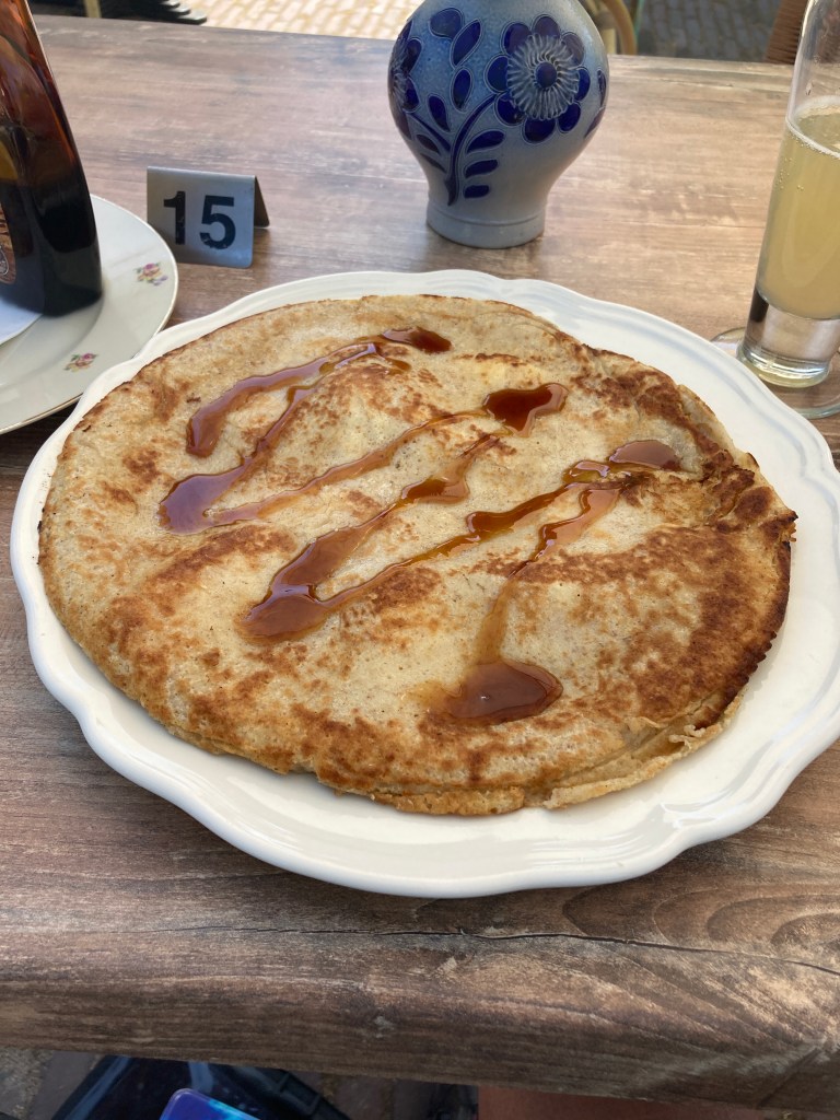 I was starting feel peckish, so sat down at a nice looking cafe by the city walls. It was fairly busy, which is usually a good sign. In this case though, it might have been because there was only one person serving. It took about 30 mins to place an order and a similar time for the food (a rather delicious) apple pancake to arrive. That wouldn’t have been too bad except it was baking in the sun and I had no shade. I did my best to get as much of my body under the table as possible, but short of hiding under it, I was going to roast. As soon as a table with an umbrella became free, I commandeered it !