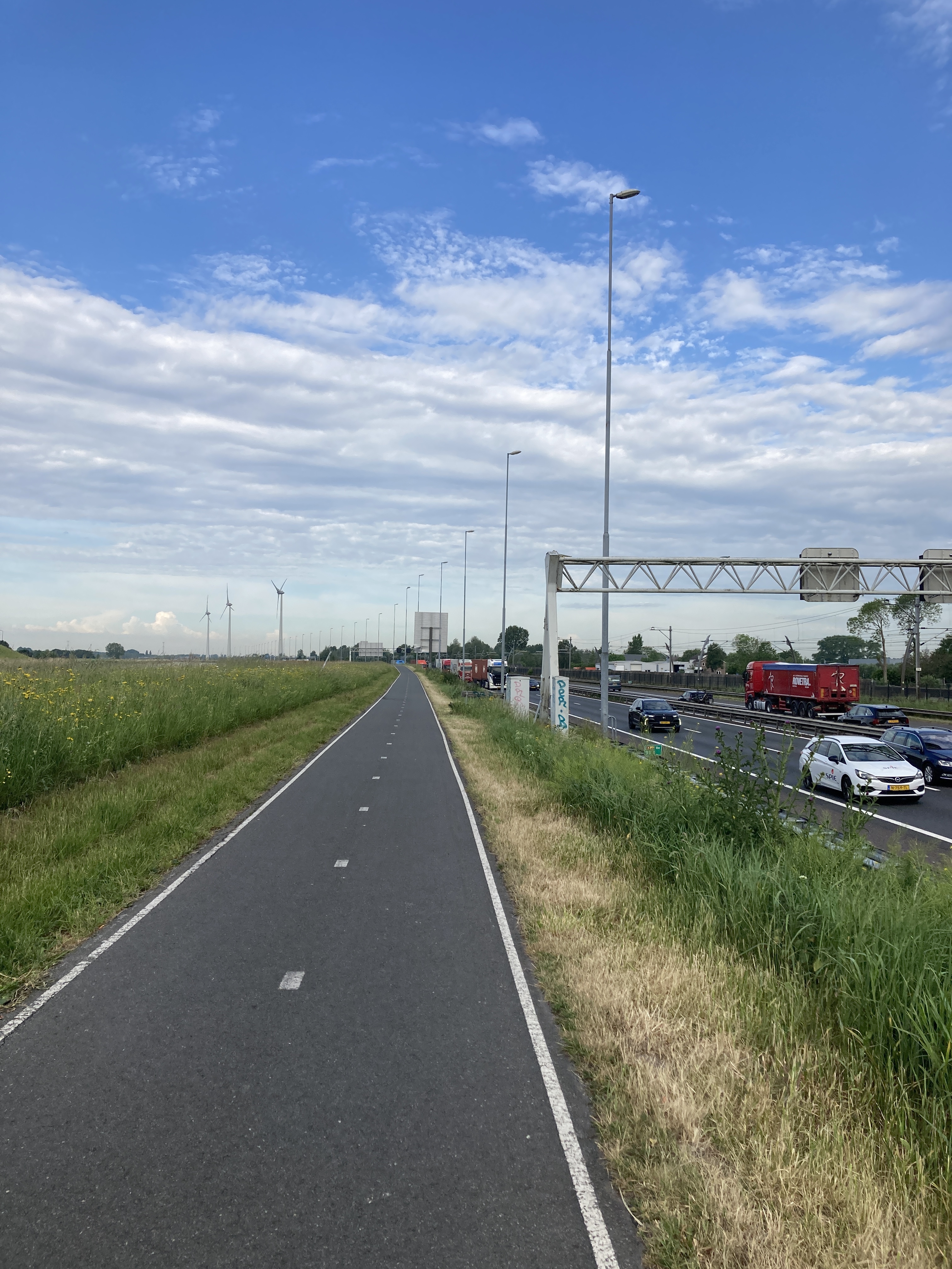 After about 20km I was back on the route proper and it was then that windmills started to pop up, a sure indication that this area was windy. Although the wind hasn’t picked up yet.