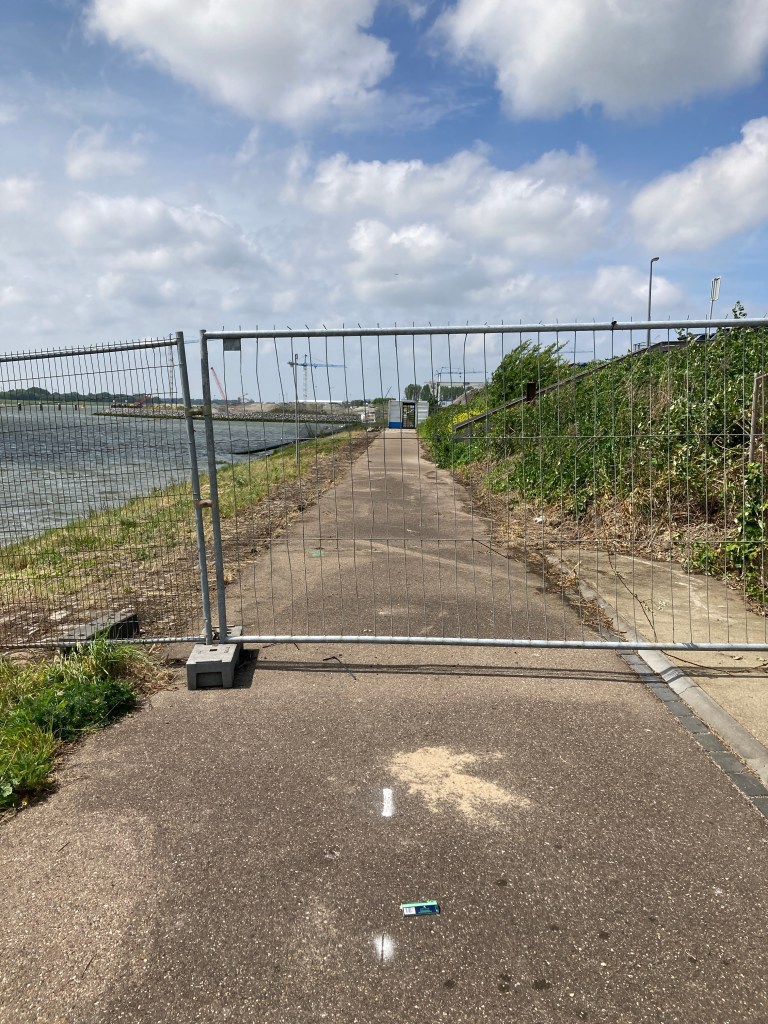 Normally, I’d walk around these, but it went right up to the waters edge. So another detour involving pushing through scrub and a few muddy footpaths until I found a road. I followed the road and then the railway line to the Hook as far as I could before the last few km on the coast again. Eventually made it to the Hook and the ferry port. A couple of hours waiting and we were let on the ferry. So it’s a drink and dinner for me. Tomorrow back in the U.K.