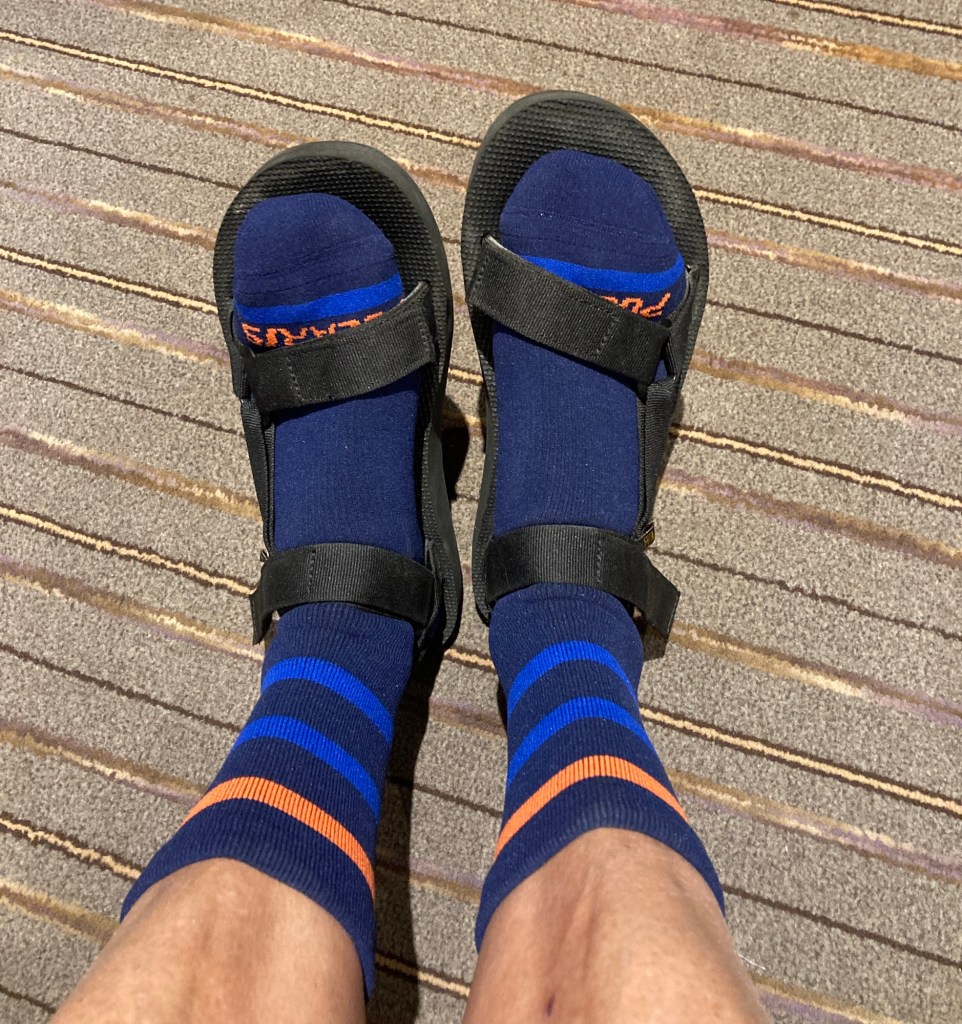 An unreasonably early alarm call heralded the start of the day. I wanted to make sure I could take full advantage of Premier Inn’s “all you can eat breakfast” before heading off to the ferry. Suitably stuffed I prepared myself for the day ahead. In this case that meant rainproofing myself and the bike as it was pouring down and I knew I’d probably have to stand in the rain for an hour or so waiting to board. No business lounge sadly ! Still it was a chance to practice that age old British custom of wearing sandals with socks. In this case waterproof ones.