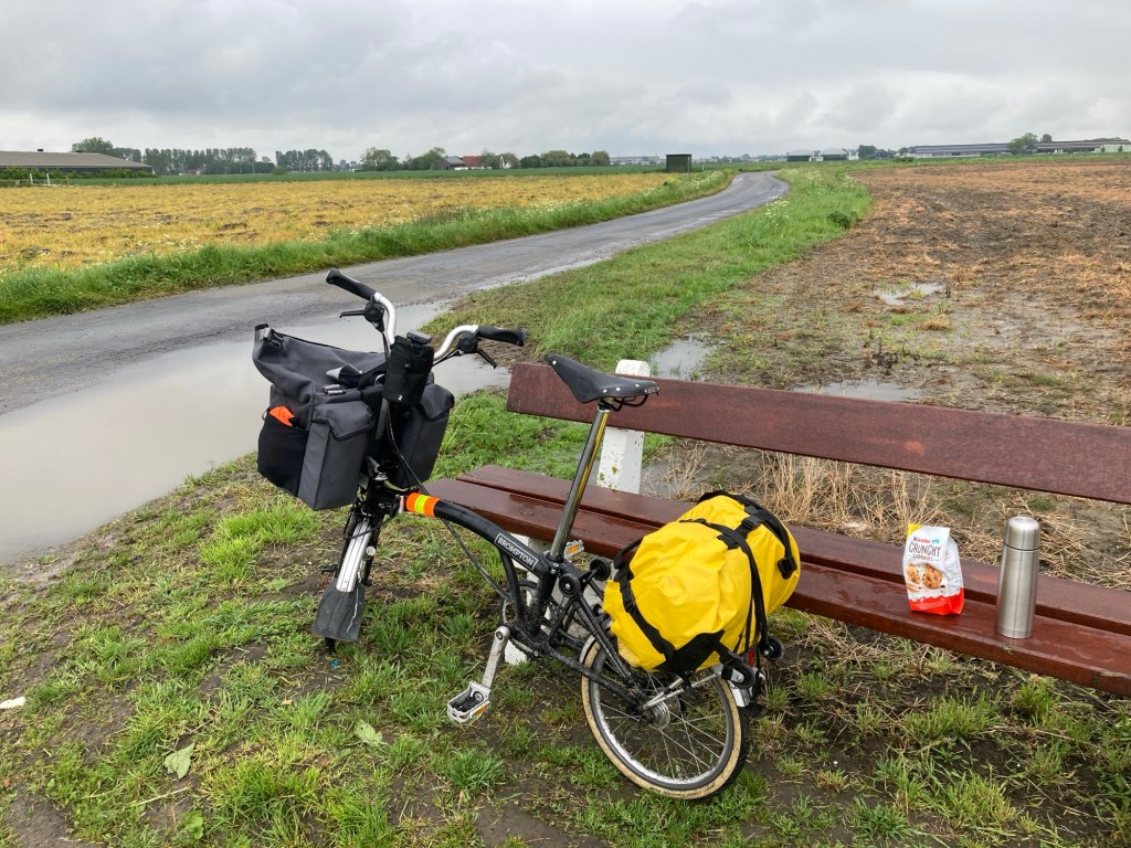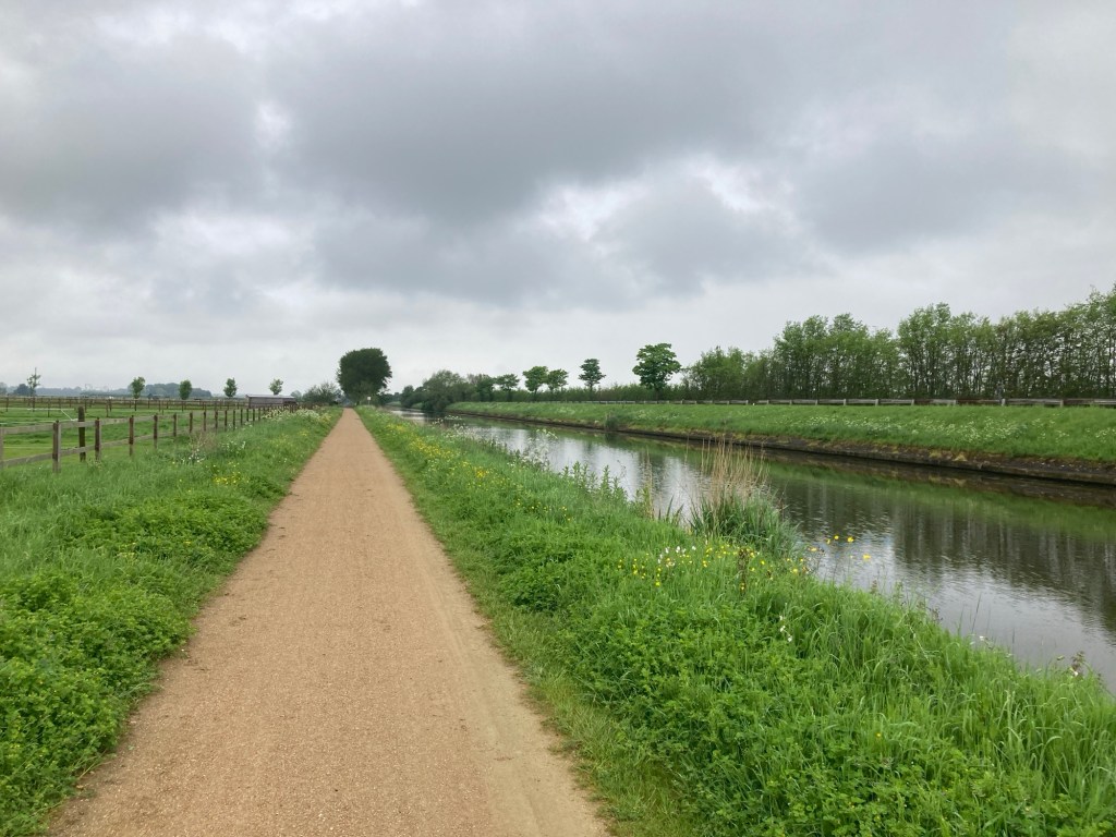 Funnily enough it was still wet ( very at times) . To make matters worse, I struggled to find my way out of the port complex. On one of several detours, I passed a building site, no big deal except the lorries had deposited a lovely layer of earth and dust all over the road, which proceeded to cover me and the bike in a brown sludge. Once I eventually found Dunkerque and left it, things improved, with much better infrastructure on the Belgian side, including a few well surfaced river/ canal paths.