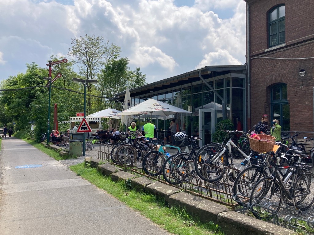 It wasn’t steep, but the continuous gradient was draining. Relief came in the form of a station converted into a Bistro. They were doing a great trade, with a constant stream of cyclists refuelling.