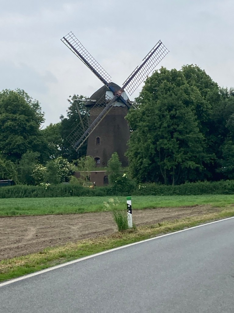 A quick change in Koblenz and I was on the slow train to Oberhausen, which stopped at Duisburg my next changeover point. This got me within 100km of Nijmegen. Too much for what would be left of the day, so I planned one further train to Xanten, which left a more manageable 50km, with options to bail out earlier if needed. The Oberhausen train which had been relatively empty filled up as it headed West across Germany, to the point it was totally packed, with aisles clogged with people and bags, and the poor Brompton hidden behind them all. Fortunately for me, it emptied out at Dusseldorf Flughäfen one stop before mine.