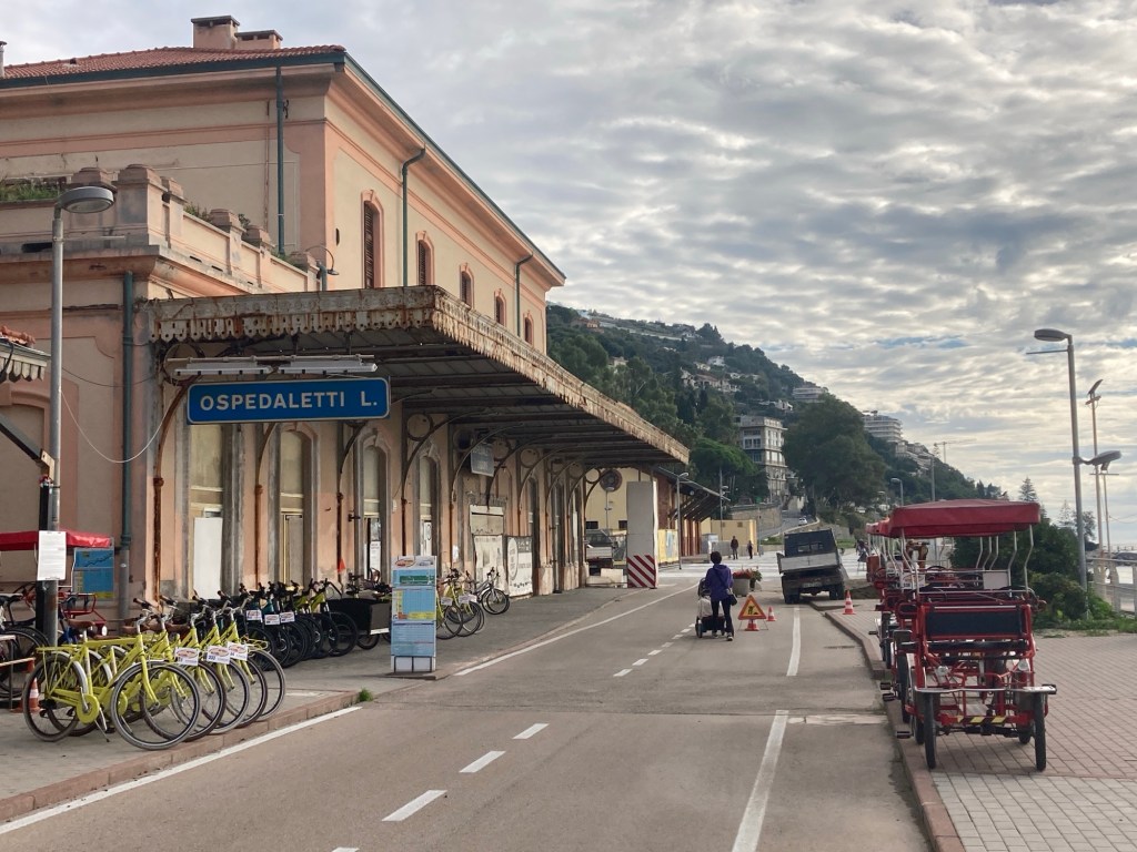 Once in Ventimilgia, it was a change of trains (and four flights of stairs) and off to Sanremo, but not before helping an old lady with her bags. She was struggling with the stairs and not one person stopped to help her !