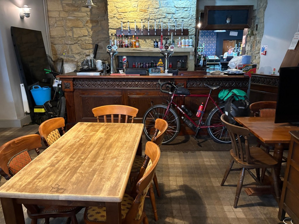 We had planned on heading to a campsite west of Morpeth for the night, but this involved a 10 mile detour and an additional 10 miles the following day. So after scouring the internet we found a good deal in a pub undergoing renovation fairly close by,