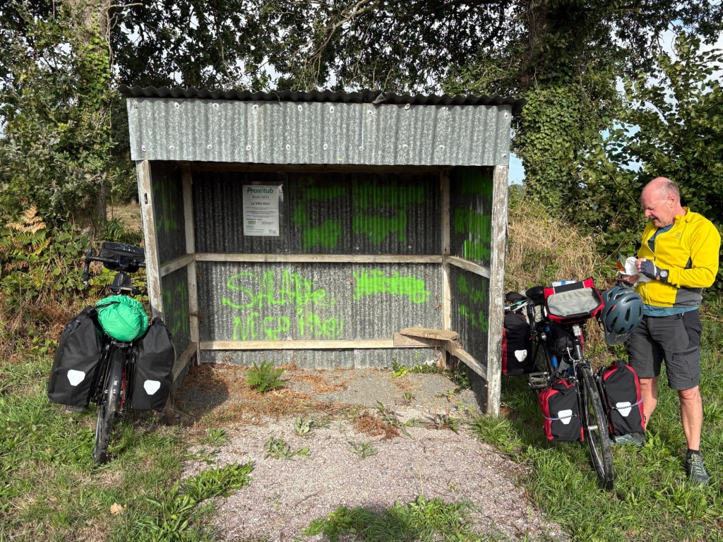 As usual it was very hilly at least up until lunchtime. We made much better progress today, hitting an early lunch stop at half distance. We still had time to appreciate our first corrugated iron bus stops though.